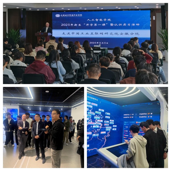11月5日,人工智能学院组织130名2025级新生赴中国工业互联网研究院安徽分院(安徽省工业互联网发展研究中心)开展“开学第一课”暨认识实习活动,以产业前沿实践结合专业深度指引,为新生扣好专业学习“第一粒扣子”。
