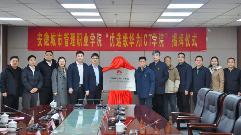 1月13日,我院“优选级华为ICT学院”揭牌仪式顺利举行。学院党委书记晏祥、党委委员、纪委书记王路、教务处和人工智能学院负责人,以及华为安徽产业发展与生态部部长王锡山等校企双方代表出席仪式。